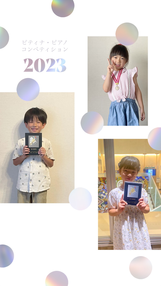 2023ピティナ・ピアノコンペティションのA2級〜C級にエントリーした5名の生徒さんが予選を通過し、本選会に於いて2名が優秀賞、1名が奨励賞を受賞いたしました。